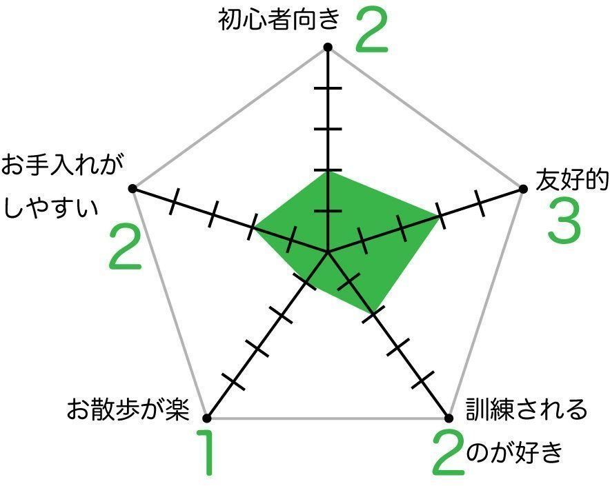 アラスカン・マラミュートの飼いやすさ 各項目の数値が大きいほど飼いやすい傾向