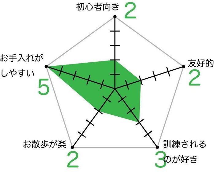 ジャーマン・ショートヘアード・ポインターの飼いやすさ 各項目の数値が大きいほど飼いやすい傾向