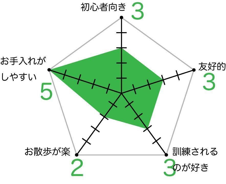 ファラオ・ハウンドの飼いやすさ 各項目の数値が大きいほど飼いやすい傾向