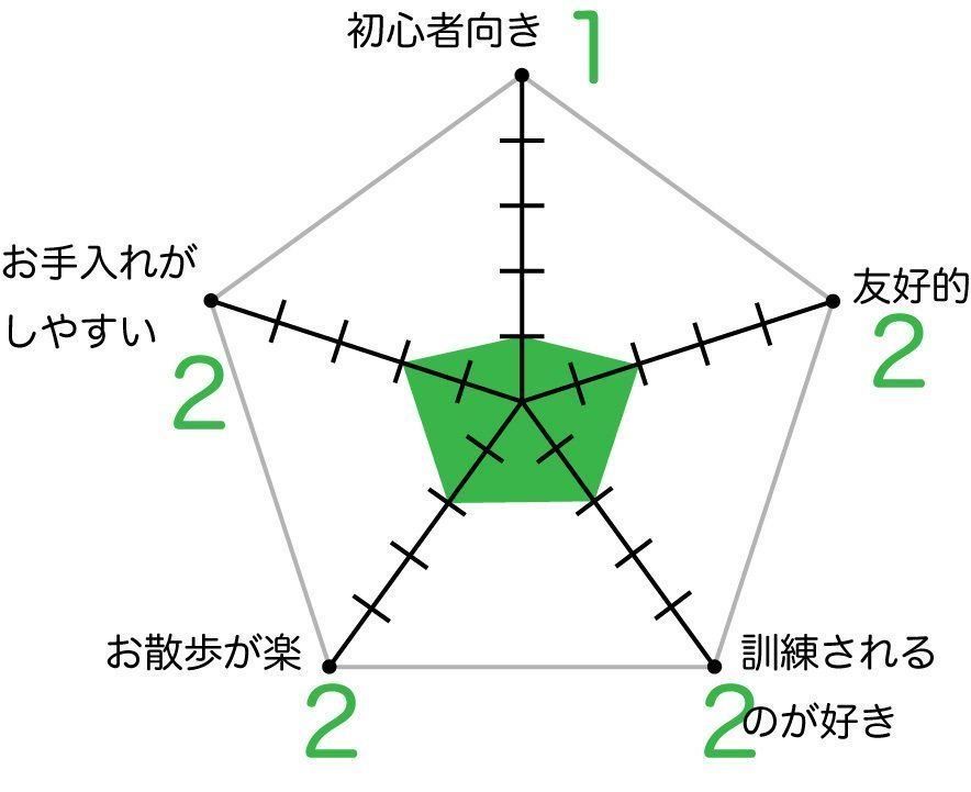 ピレニアン・マスティフの飼いやすさ 各項目の数値が大きいほど飼いやすい傾向