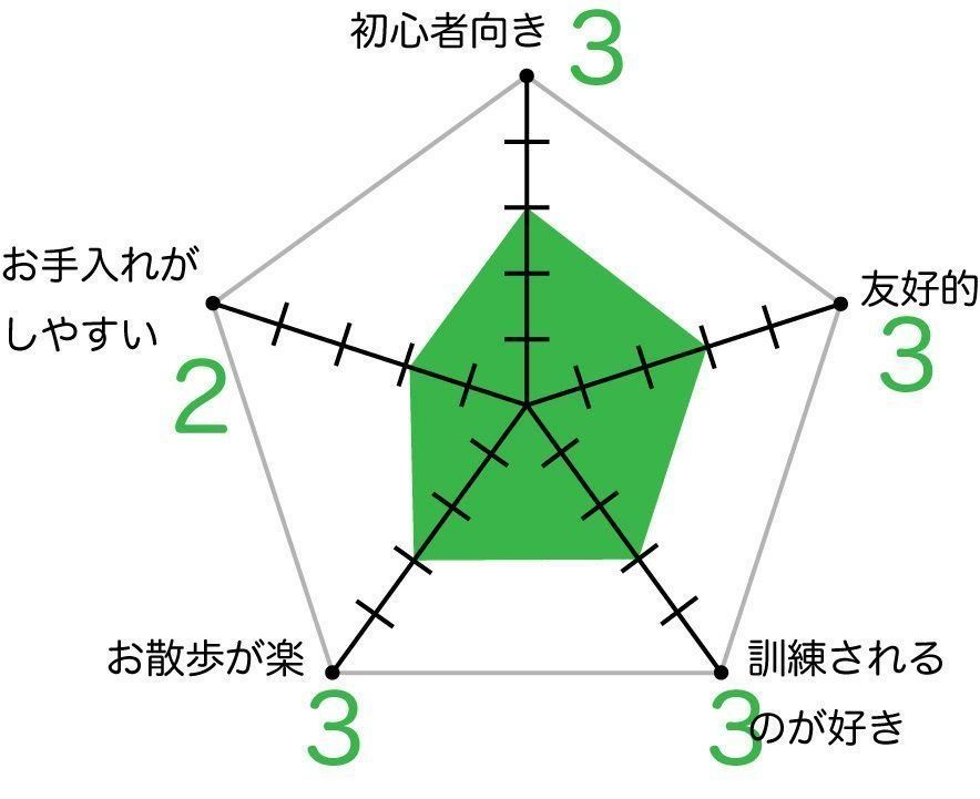 チベタン・テリアの飼いやすさ 各項目の数値が大きいほど飼いやすい傾向