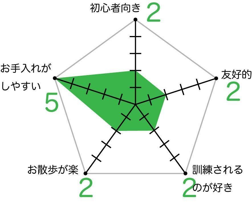 ミニチュア・ブル・テリアの飼いやすさ 各項目の数値が大きいほど飼いやすい傾向
