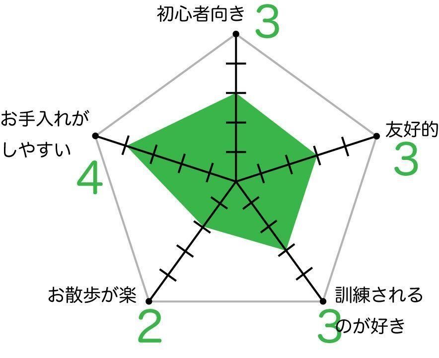 オーストラリアン・ケルピーの飼いやすさ 各項目の数値が大きいほど飼いやすい傾向
