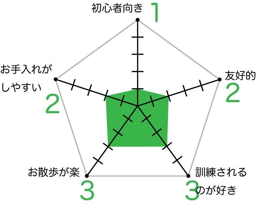 シャー・ペイの飼いやすさ 各項目の数値が大きいほど飼いやすい傾向