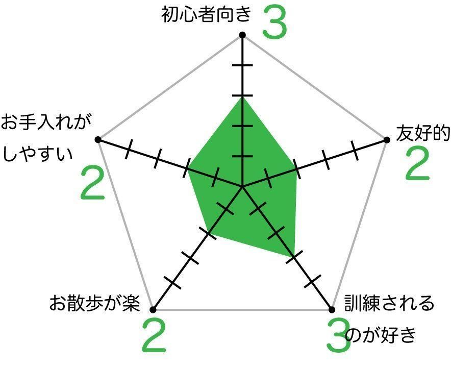 キースホンドの飼いやすさ 各項目の数値が大きいほど飼いやすい傾向
