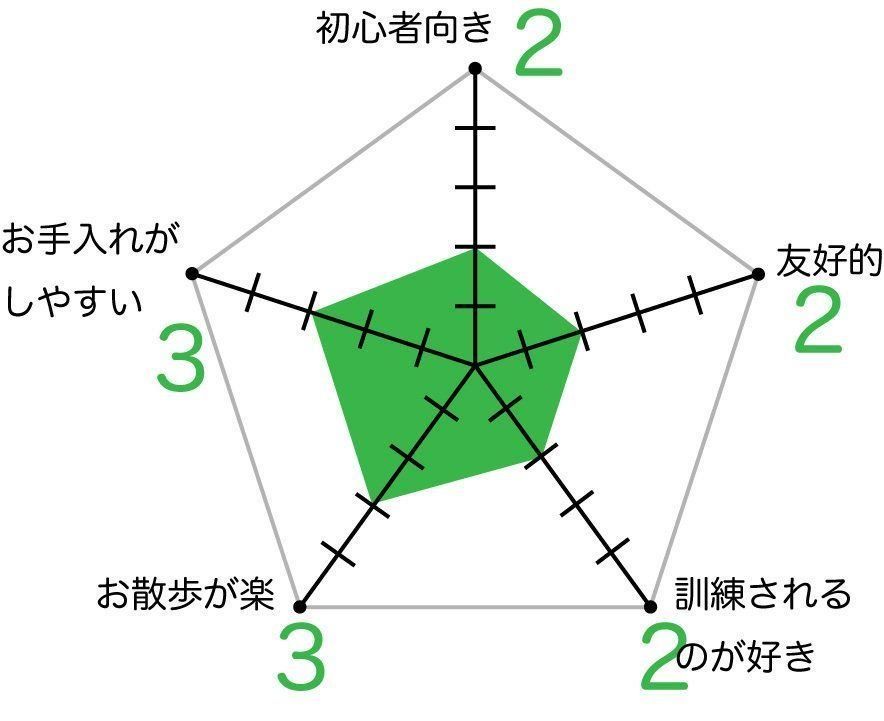 ウェルシュ・コーギー・カーディガンの飼いやすさ 各項目の数値が大きいほど飼いやすい傾向