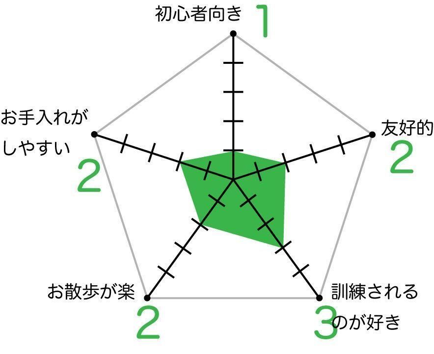 スタンダード・シュナウザーの飼いやすさ 各項目の数値が大きいほど飼いやすい傾向