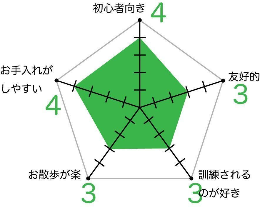 スキッパーキの飼いやすさ 各項目の数値が大きいほど飼いやすい傾向