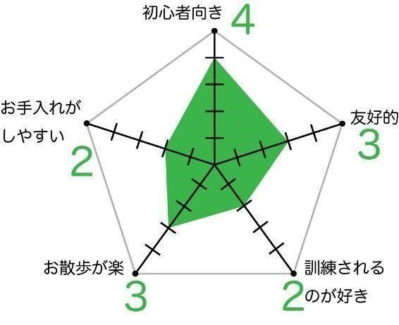 ラサ・アプソの飼いやすさ 各項目の数値が大きいほど飼いやすい傾向