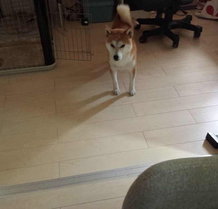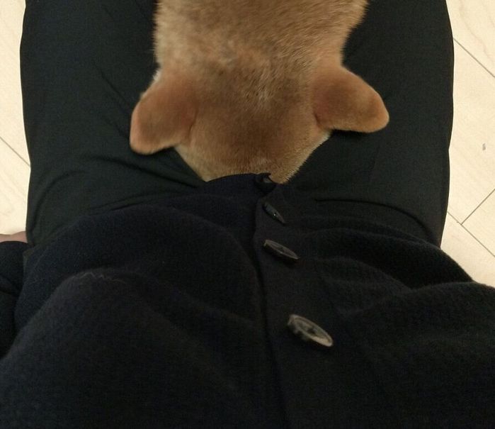 「帰りが遅い!」「寂しかった!」という抗議しているようですが、なぜか抗議の仕方が私の股の間に入ってくるという行動なのです。