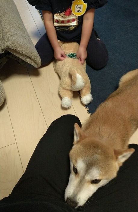 そんなタロさんを見て、娘が「タロちゃんこっちにも来てよー」と言いますが、動きません。