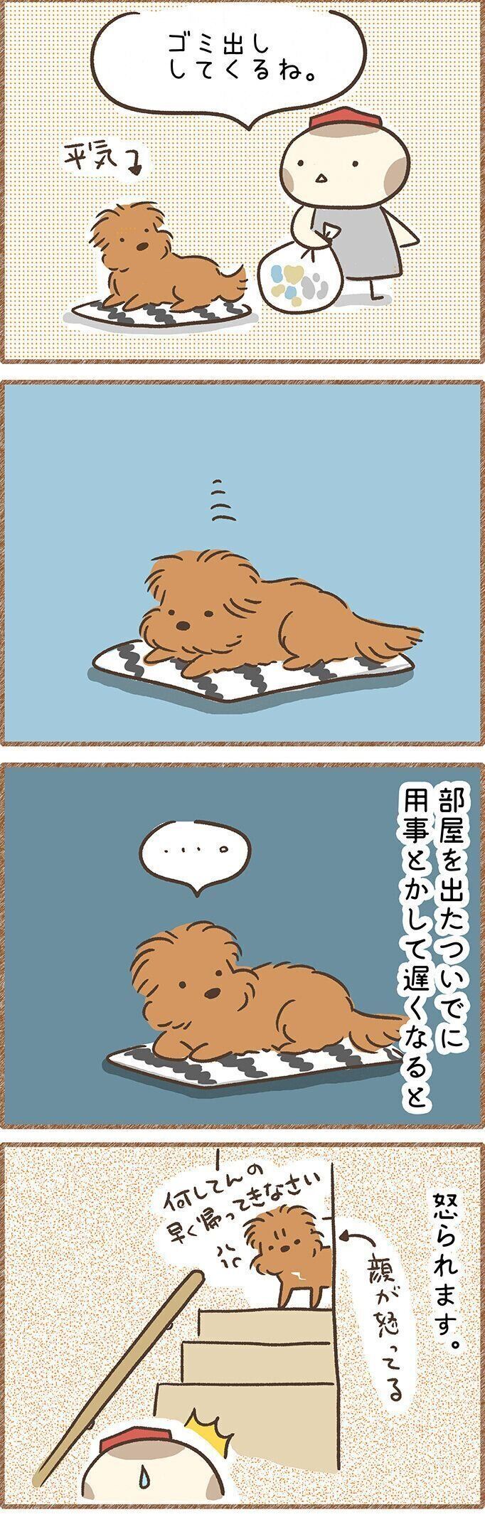 戻りが遅いと愛犬にムッと睨まれる…「早く帰ってきなさい!」|連載「こぐま犬てんすけ」vol.109
