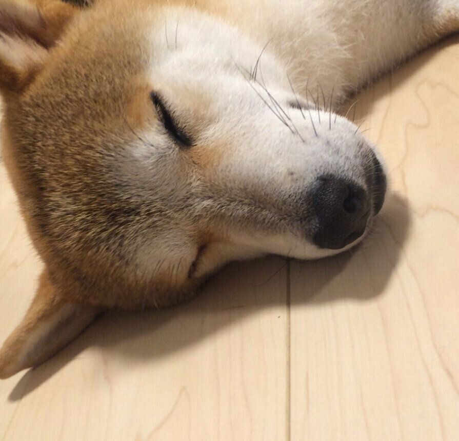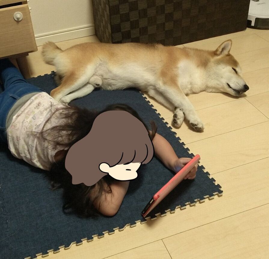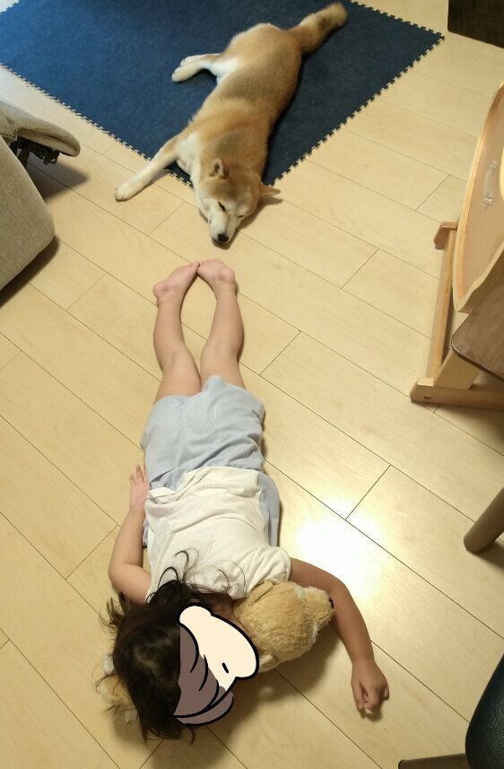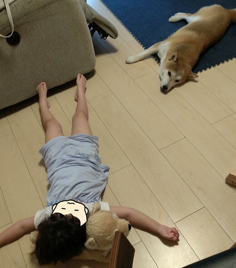 タロさんよりも床で大の字で寝る娘。相当床が気持ちいいようです。
