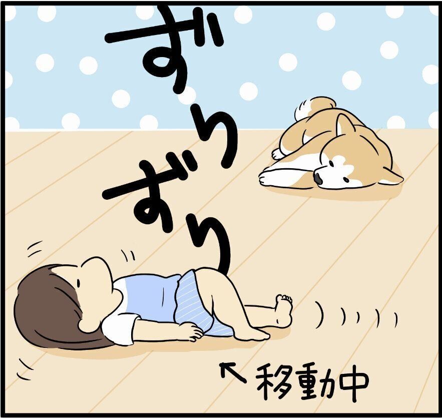 床に寝たまま移動する娘