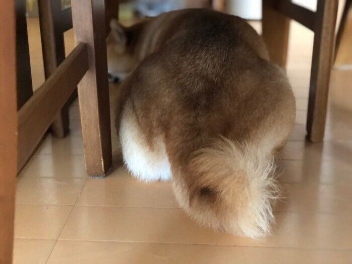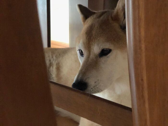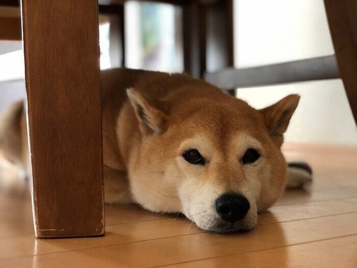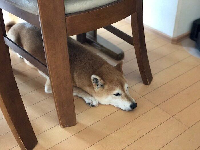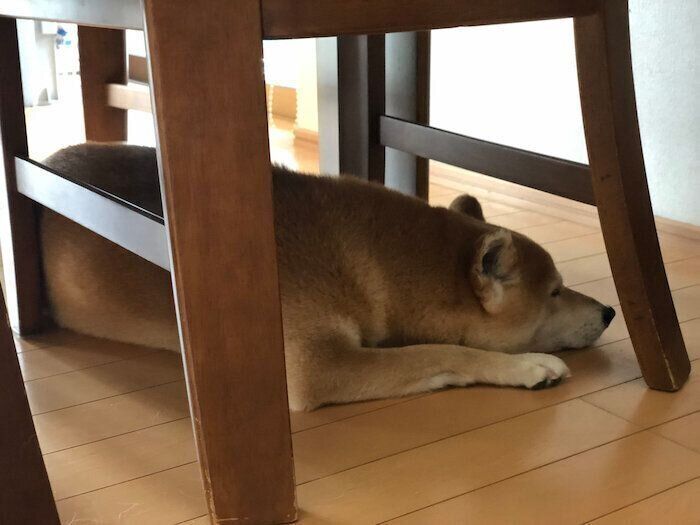 寄る年波には勝てない?柴犬マロたん、テーブルの下でまったり過ごす日々