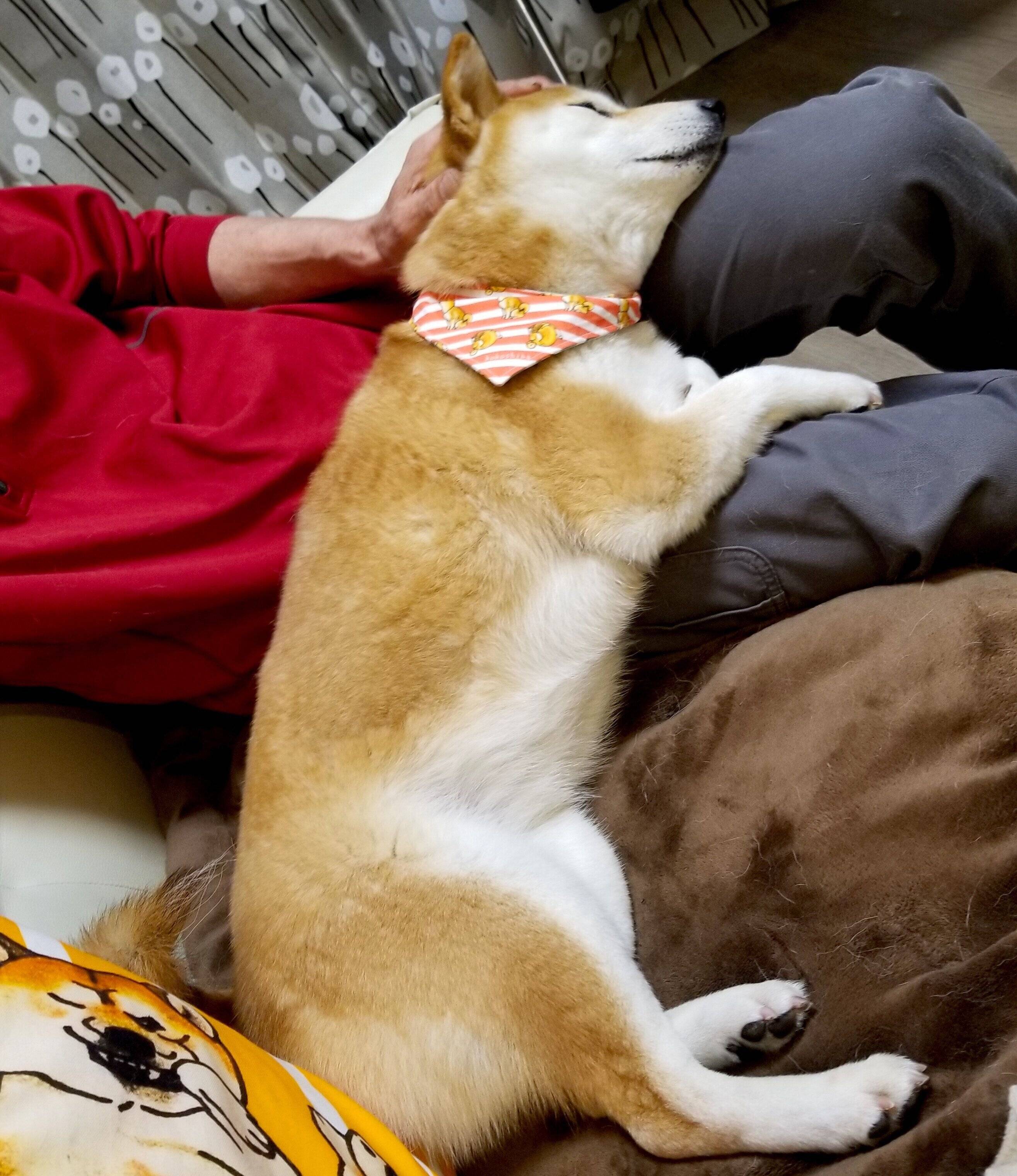 この写真のように体をくっつけてきて、足の上に頭を置いたりすることは滅多にありません。