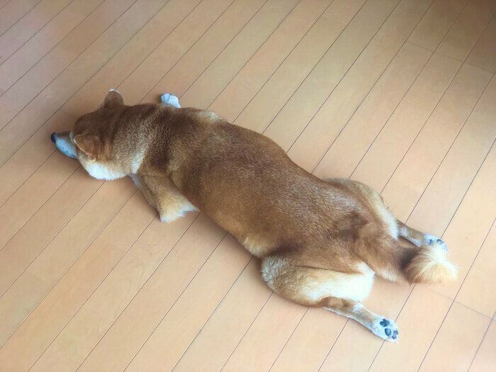 暑くてビターンとしてしまう柴犬マロたん、ゴハンとおやつの時だけやる気がみなぎる?