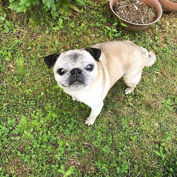 食べ方がゆっくりになっためー、でも顔中ゴハンだらけはそのまま!|連載「パグ犬・めー」vol.117