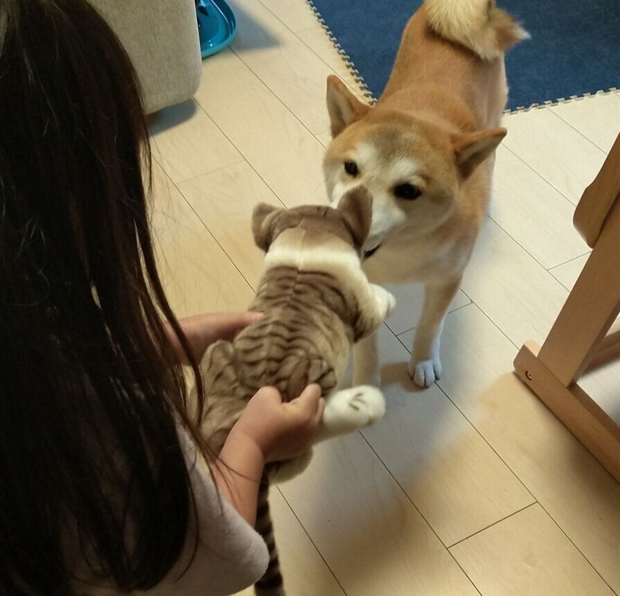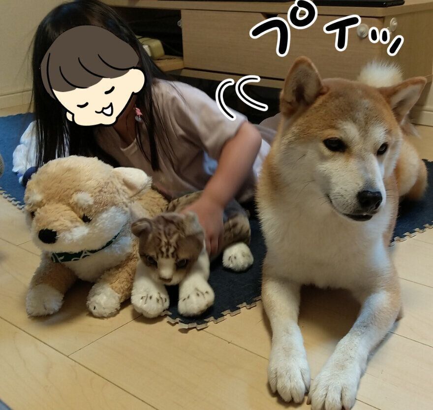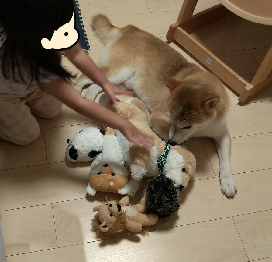 ぬいぐるみに自分のスペースを取られると、ぬいぐるみを噛んでしまう程です。