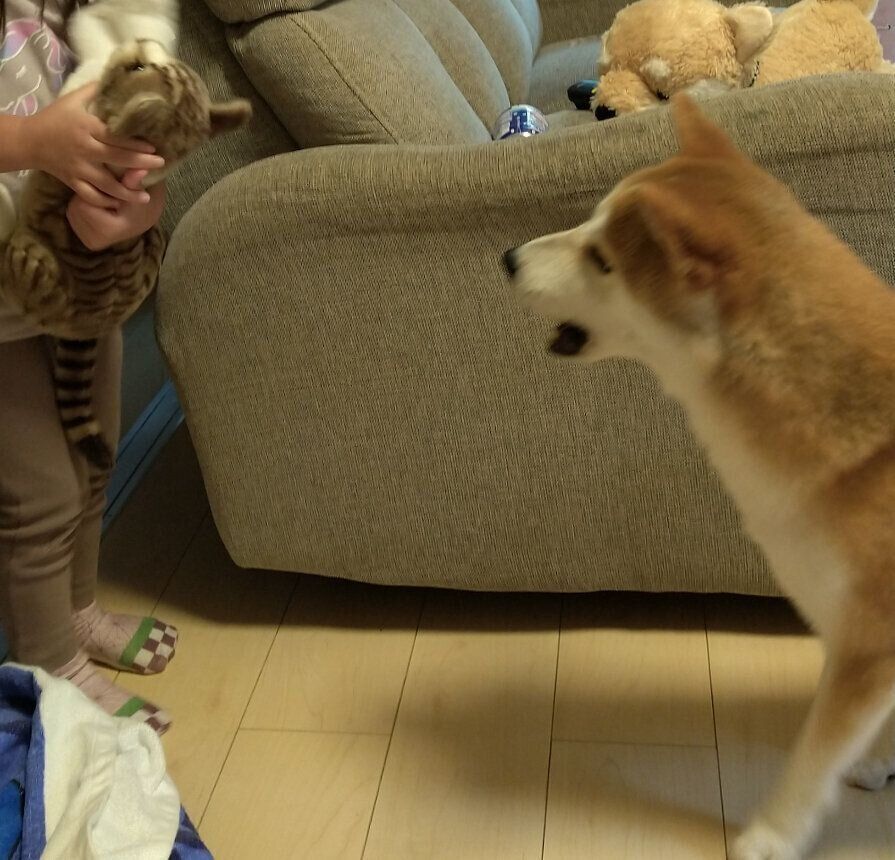ぬいぐるみとの縄張り争い!?