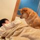 「机の上に置いてあった朝の散歩で主人がかぶっていた帽子を、福はコッソリ手に入れていて。夕方の散歩に行く時間までずっとそばに置いていました。なんせ主人のニオイ付きなので(笑)