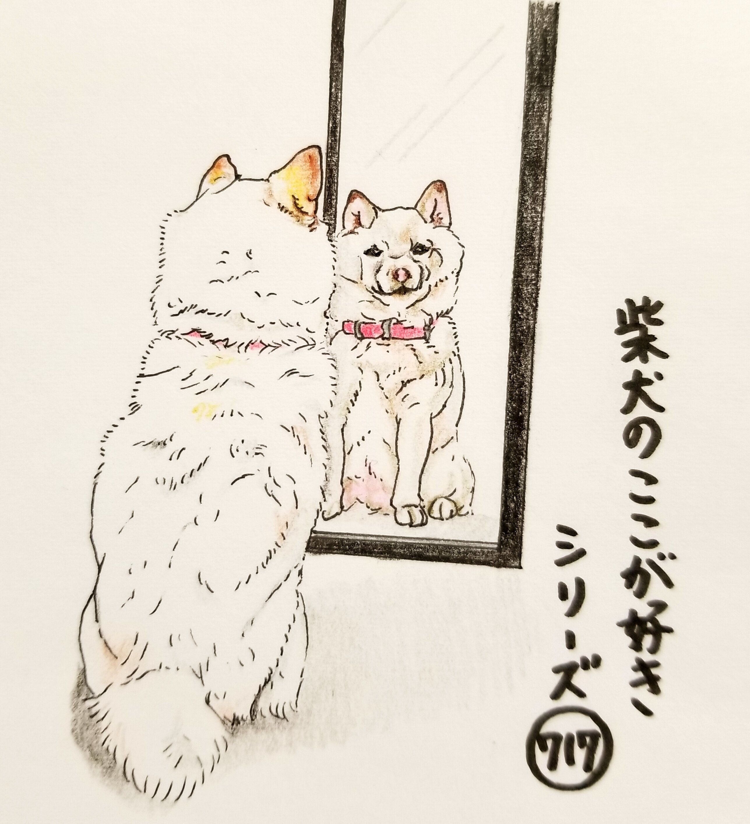 不思議なもので、人でも柴犬さんでも鏡越しに目が合うとなぜかドキッとしますね。笑