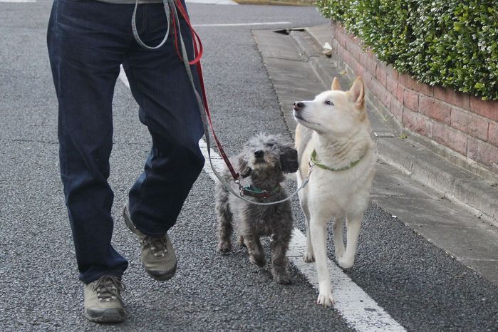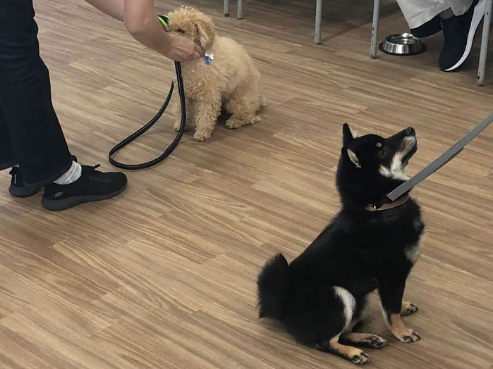 例えば、教室では飼い主に並んで歩く「ヒールウォーク」を、アイコンタクトを取りながら歩くことで、形にしていきます。