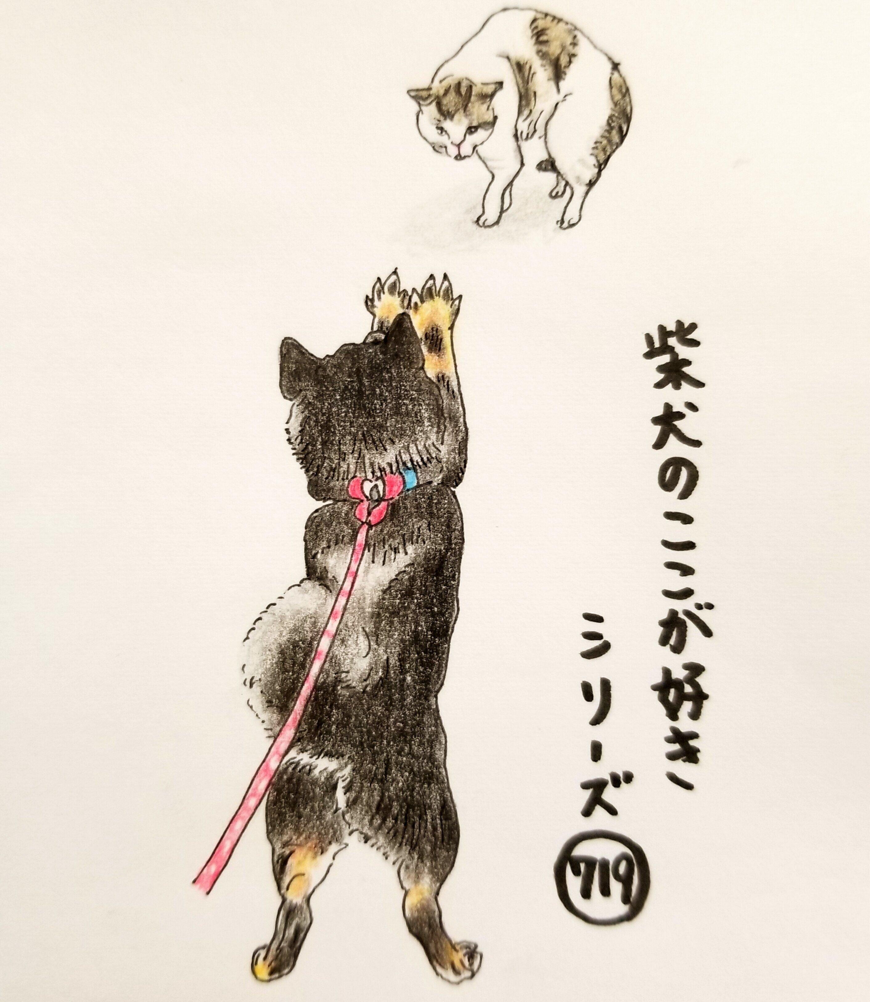 柴犬あるある、見かけた猫が気になってつい構ってしまうとこ|連載「ここ掘れここ柴」vol.119
