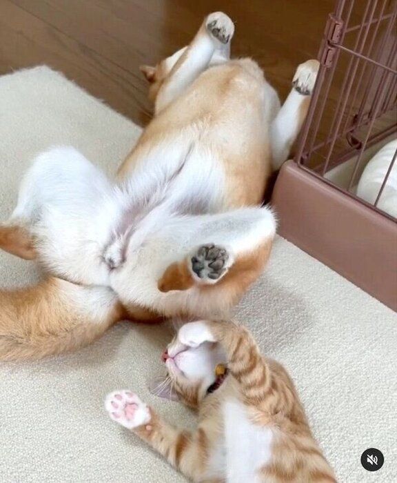 子猫に「爪とぎのやり方」を教えてもらう柴犬→挑戦するも…ほっこりする結果に♪