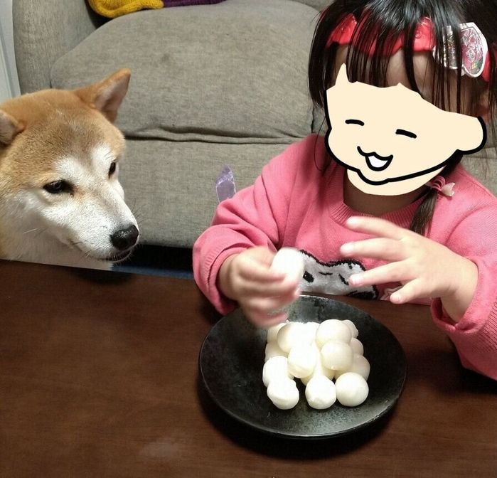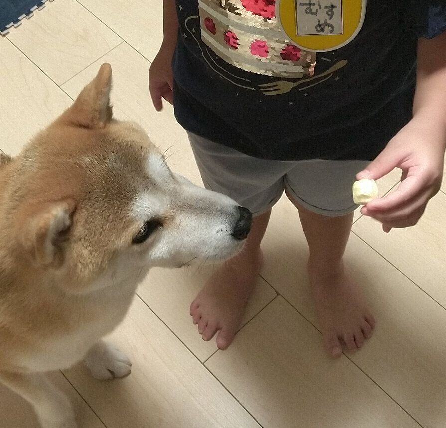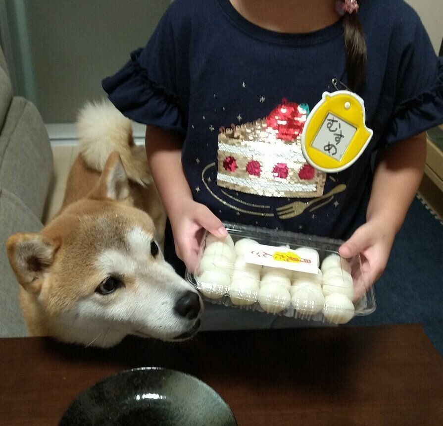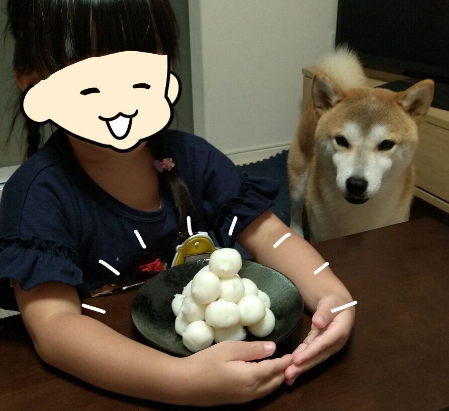 タロさんはお団子は食べられないのでオヤツのチーズをあげることにしました。