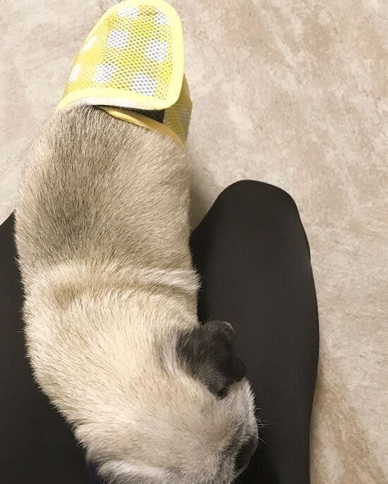 マナーベルト交換時に、なぜか独自のポジションをとるパグ|連載「パグ犬・めー」vol.126