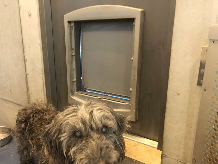 ドッグドアは、2重扉構造で手前の扉は取り外しができ、奥の扉は下部が前後するスイングドアのような作りをしています。