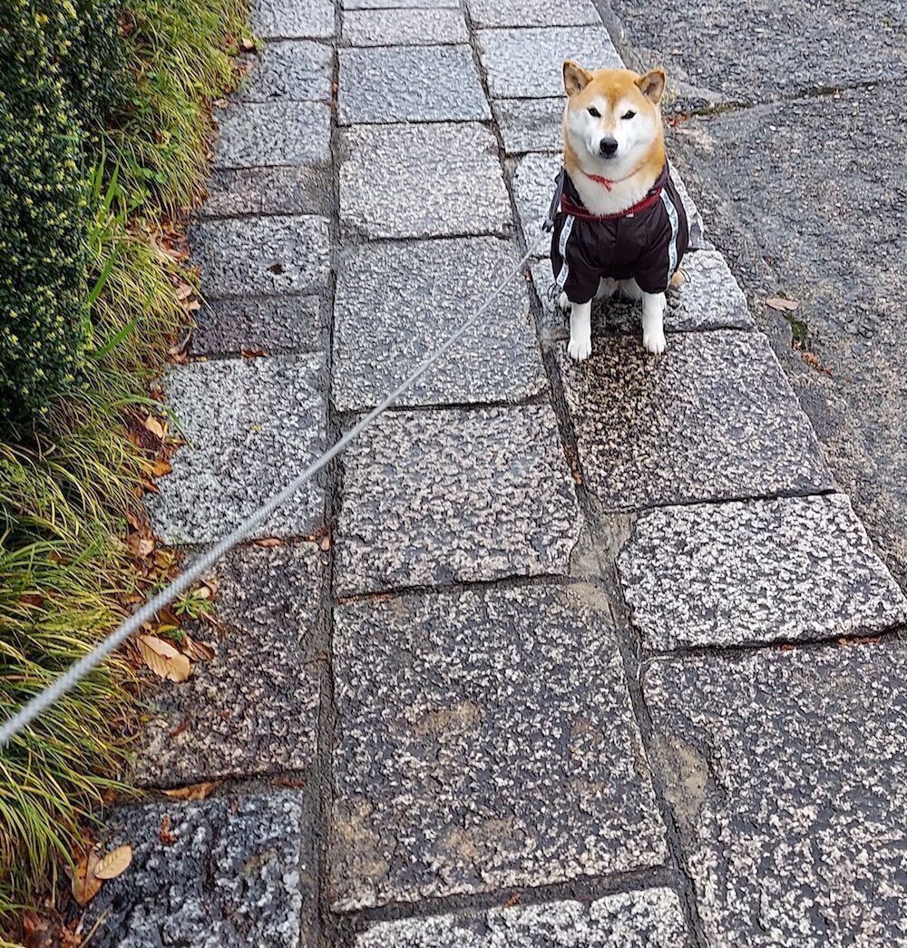歳を重ねた柴犬さんは、マイペースにお散歩を楽しんでいますね。