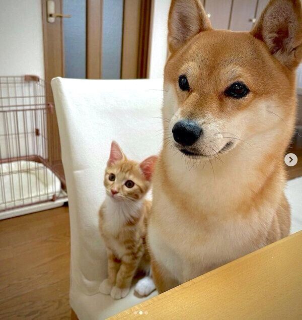 柴犬が「一緒にヘソ天しようよ」とアピールするも… 子猫の「クールな反応」に笑っちゃう!