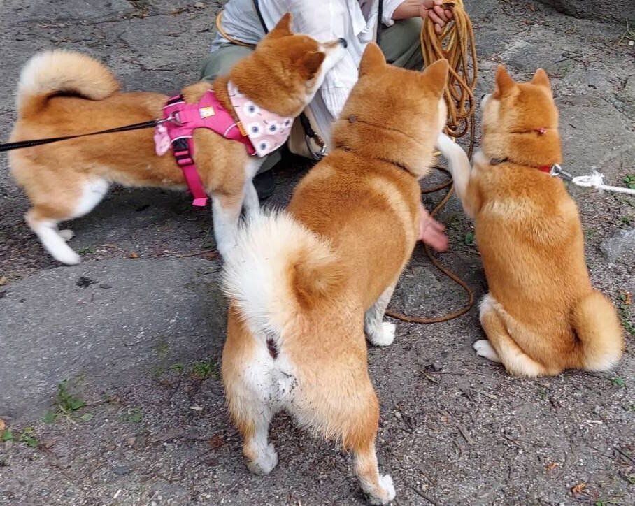 あまり群れるのが得意でないこよみが、他の柴犬さんとこの距離で一緒に写真に収まっていることがとても幸せな飼い主なのでした。