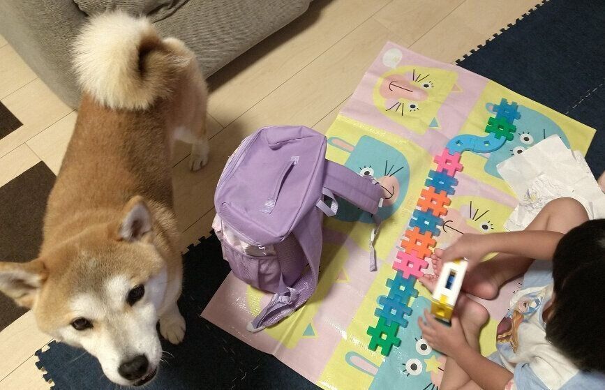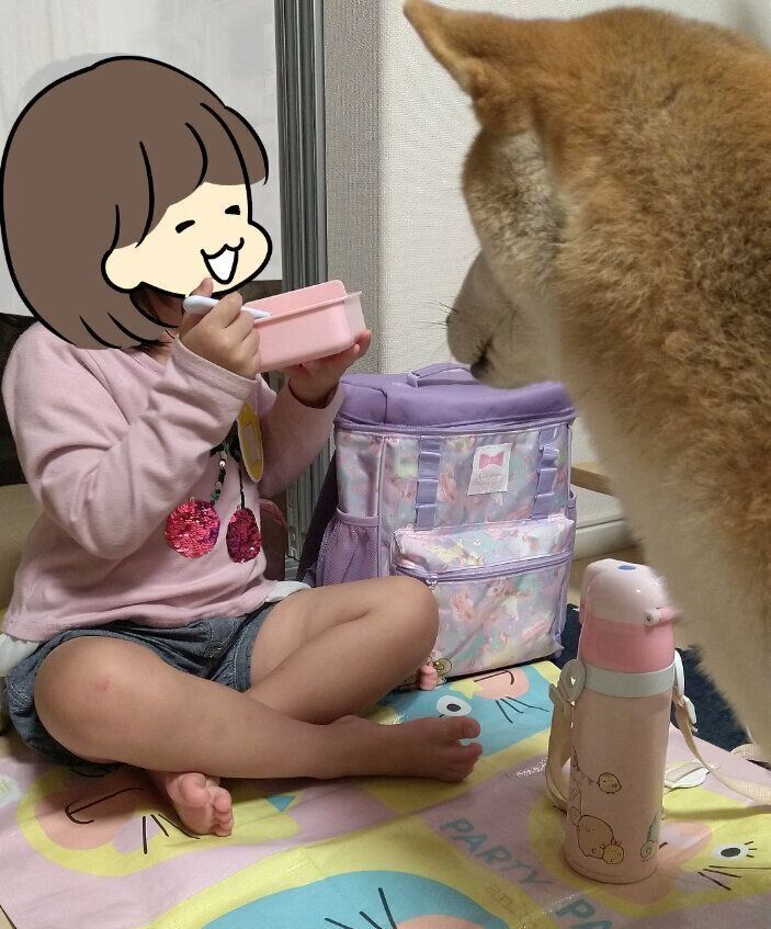 柴犬タロさんには戸惑いしかない?娘のうきうき遠足ごっこ|連載「モフモフ柴とプニプニ娘」第144話