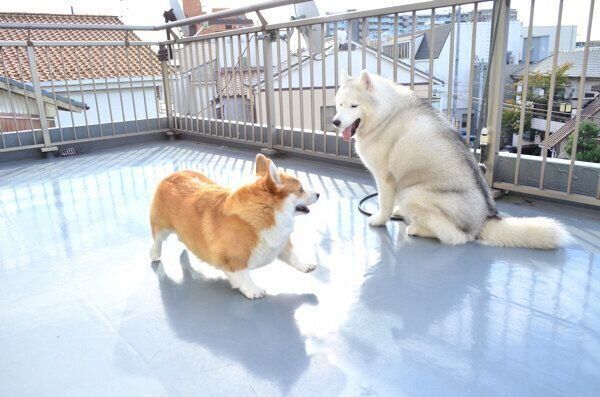 「遊ぼうよ!」と挑発し合う姉妹犬→可愛いじゃれ合いの結末にほっこり♪