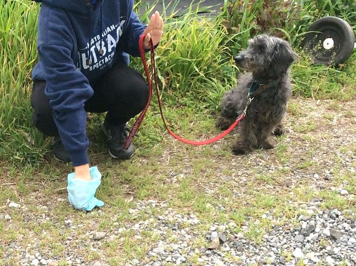 それはグーの手に集中することでまずは形作っていきます。グーの手に集中するその前提は、フードを握り込んだグーの手に集中できること。フードを握り込んだグーの手に集中する前提は、フードを握り込んだグーの手で犬を誘導できること。