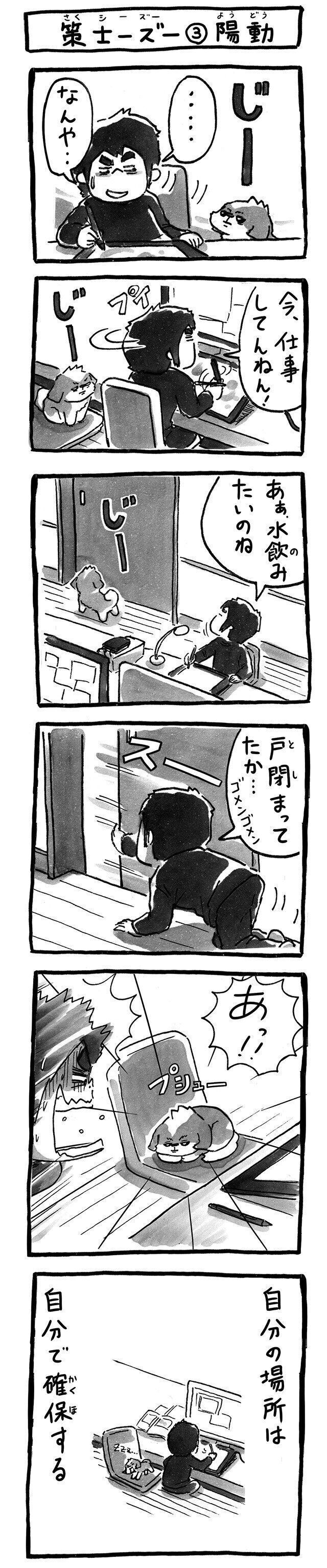 「この熱い視線の真の意味を、とーちゃんは知りもしない」(ニヤリッ)。策士ーズー・陽動編|連載「シーズー犬のてんぽ」第122回