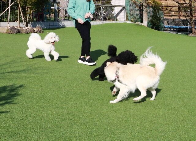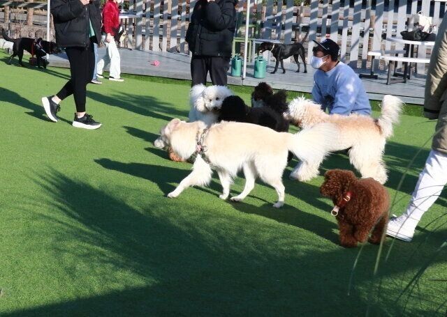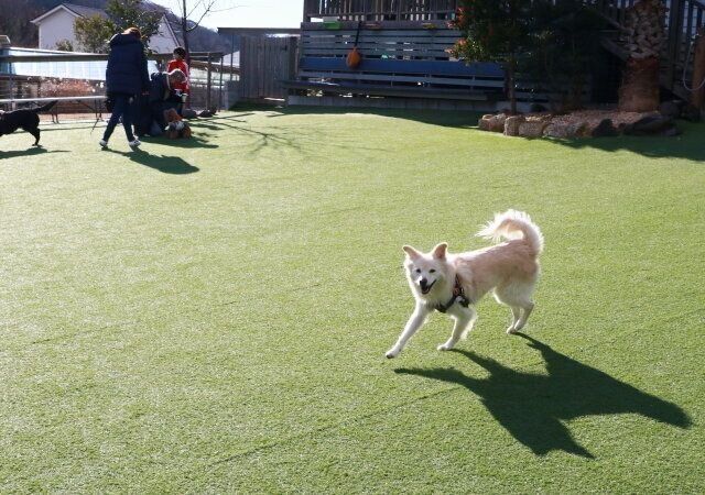 湘南国際村にあるドッグラン付カフェレストラン「Ven!Kitchen&Dog Garden」にちょくちょく行くのだが、いつもすぐに打ち解けて走ったり遊んだりする大吉とは対照的に、福助は輪に加われない。自分の居場所が見つけられず、立ち尽くしたり、隅っこでポツンとしていることが多い。