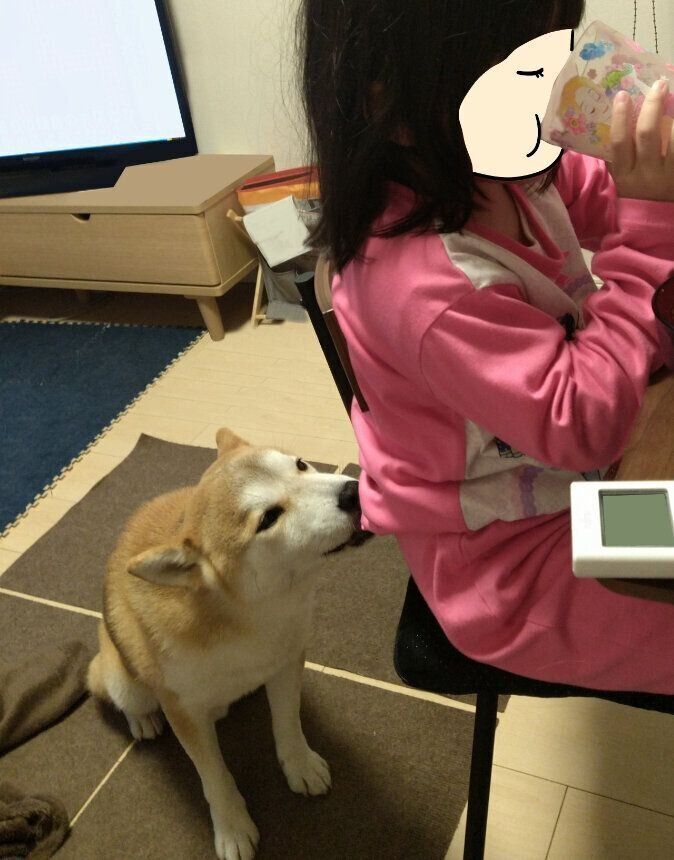 そんな中、朝の散歩も終えて余裕のあるタロさんは朝から娘にかまってほしいようです。