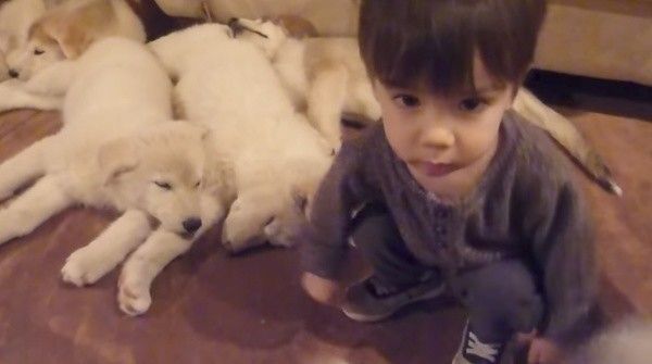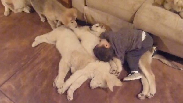 ここにも、ワンコたちと兄弟のようにじゃれあう男の子がいました。