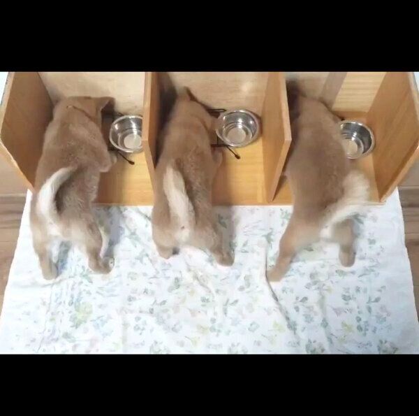 この日は雪が積もっていたそうで、外は真っ白だったのだそう。3兄弟のコイくん、トロくん、ウニくんは、その光景を不思議に思ったのでしょうか。仲良く外を眺めているのですが、立ち上がって首をかしげる様子が見事にシンクロ!