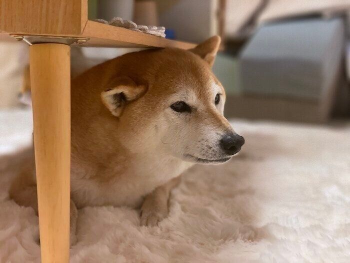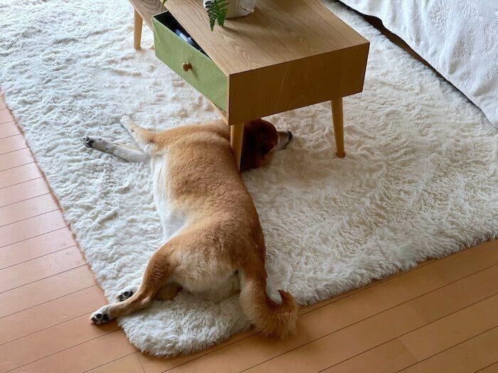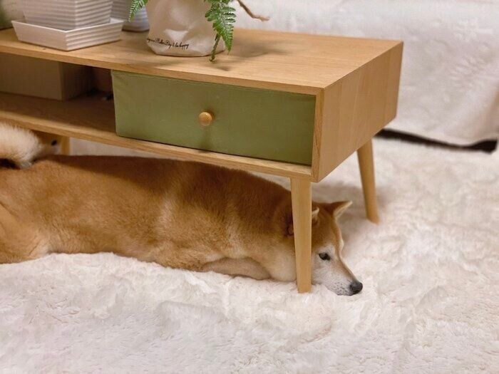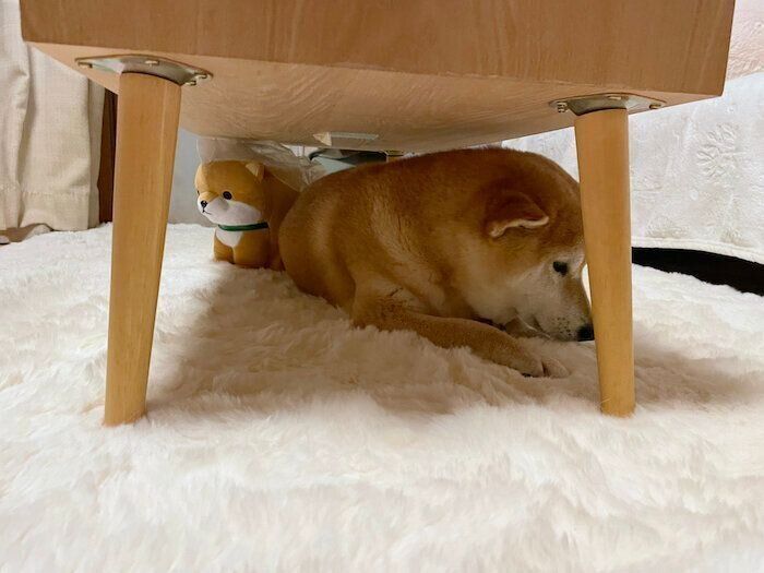 やっぱりテーブルの下が好き!マロたんのため模様替えを諦める…?