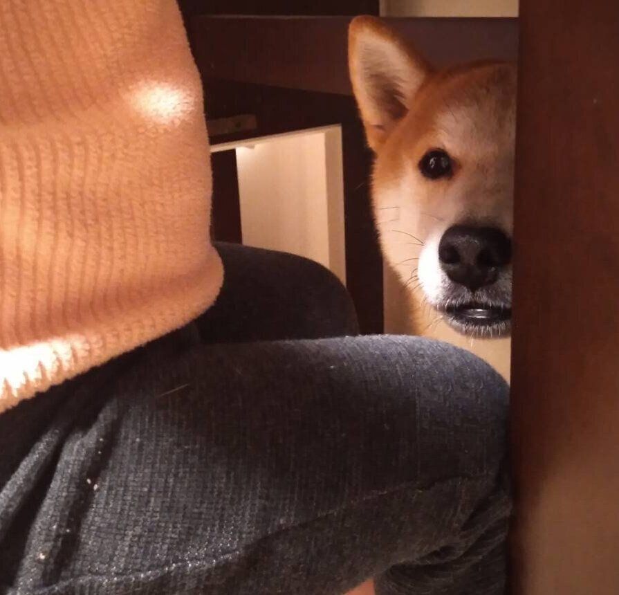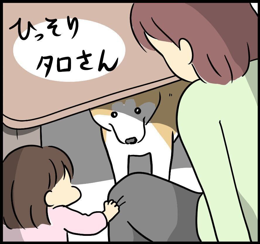 いないと思ったら…柴犬タロさんが机の下にひっそりと隠れてしまう理由は?|連載「モフモフ柴とプニプニ娘」第164話