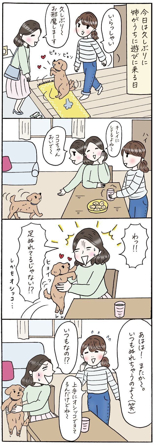 これは、トイ・プードルのココを飼い始めて約1年の飼い主ナナミが、愛犬の"足ぬれ"問題から解放されるまでのお話です。ナナミは、久々に遊びに来た先輩飼い主である姉のキヨミに愛犬ココの足ぬれを指摘され…!?