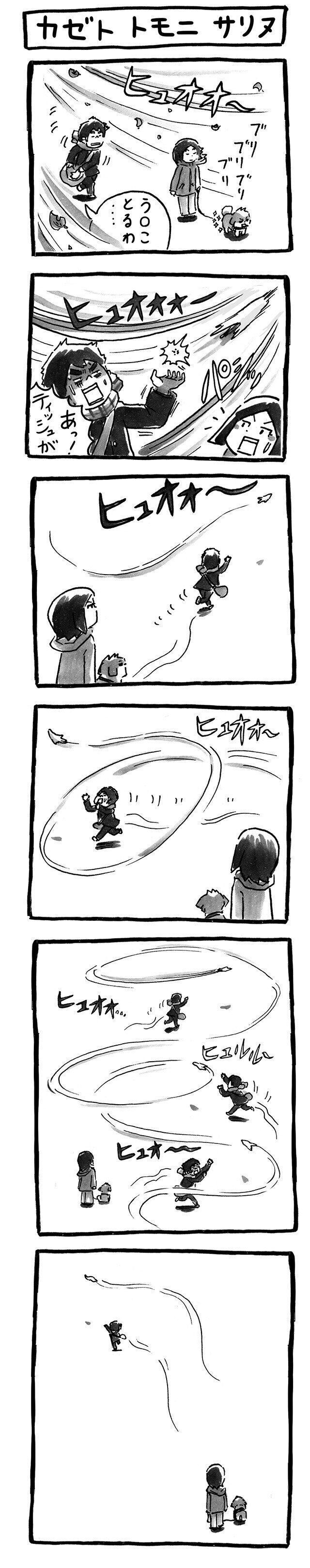 春一番にもてあそばれる、飼い主とティッシュ|連載「シーズー犬のてんぽ」第135回