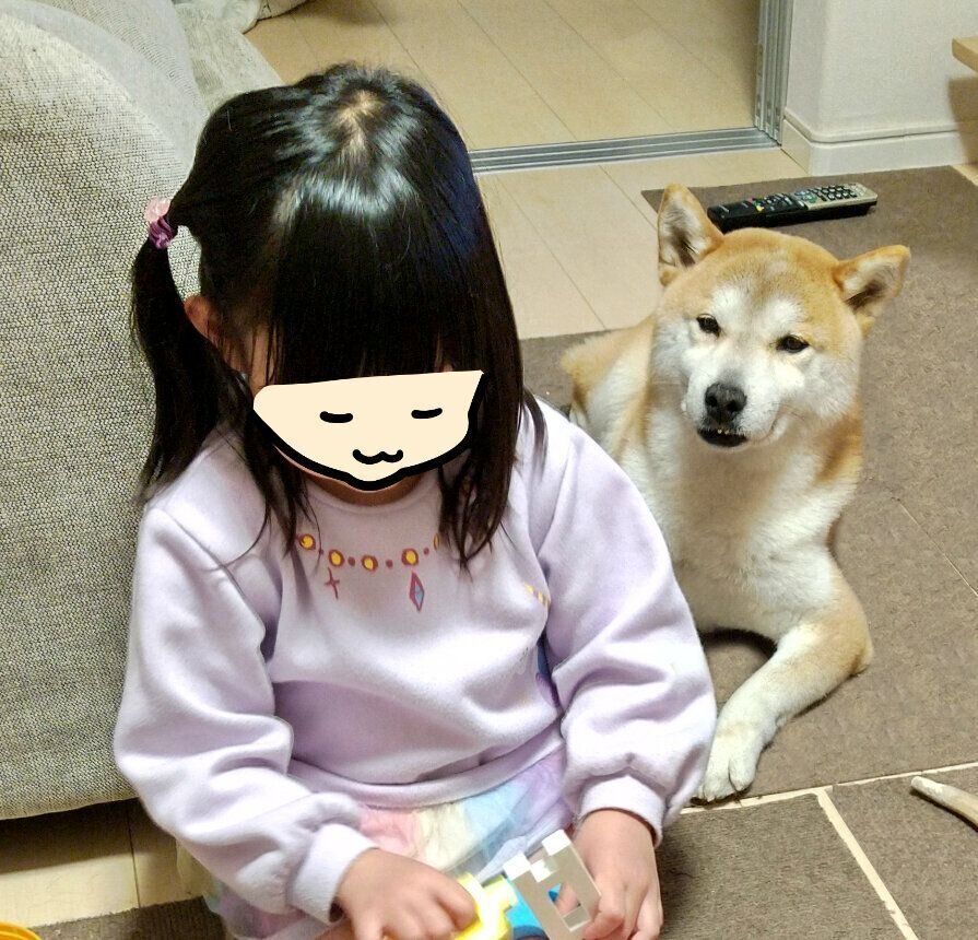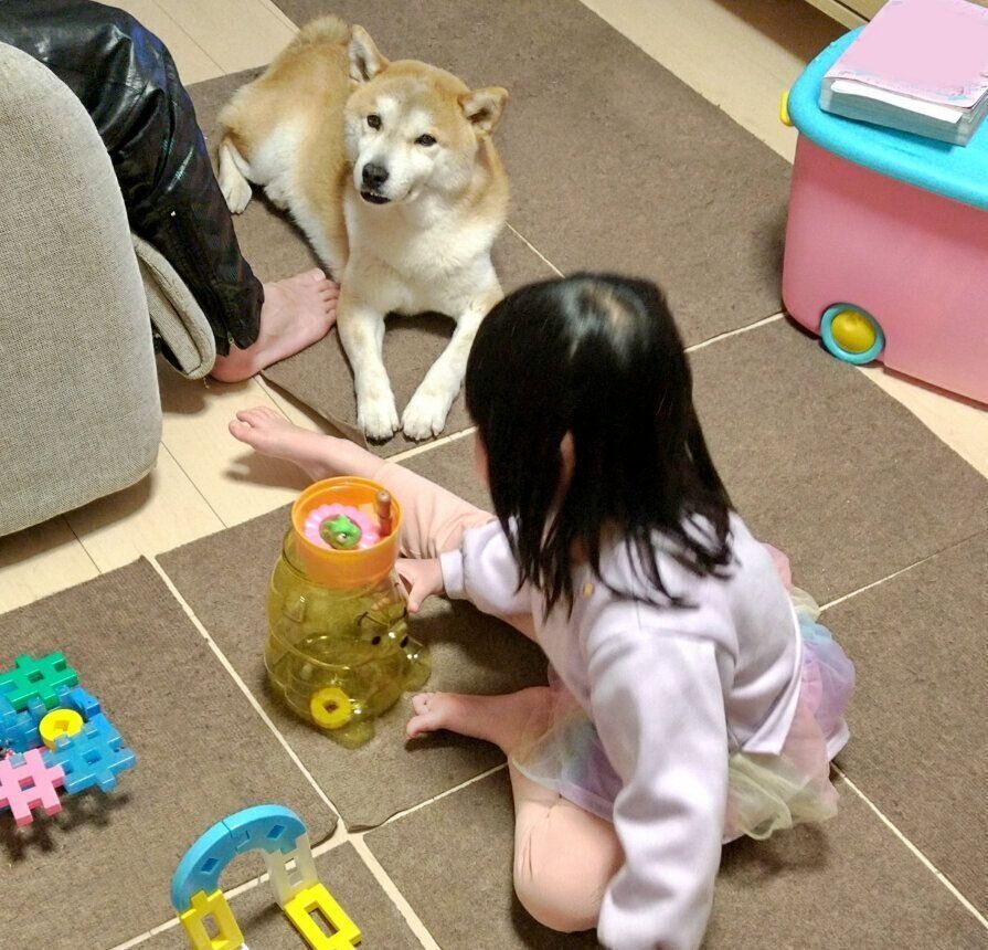タロさんは娘が遊んでいるといつも近くで見守っています。先日も娘の遊びを見守っていました。