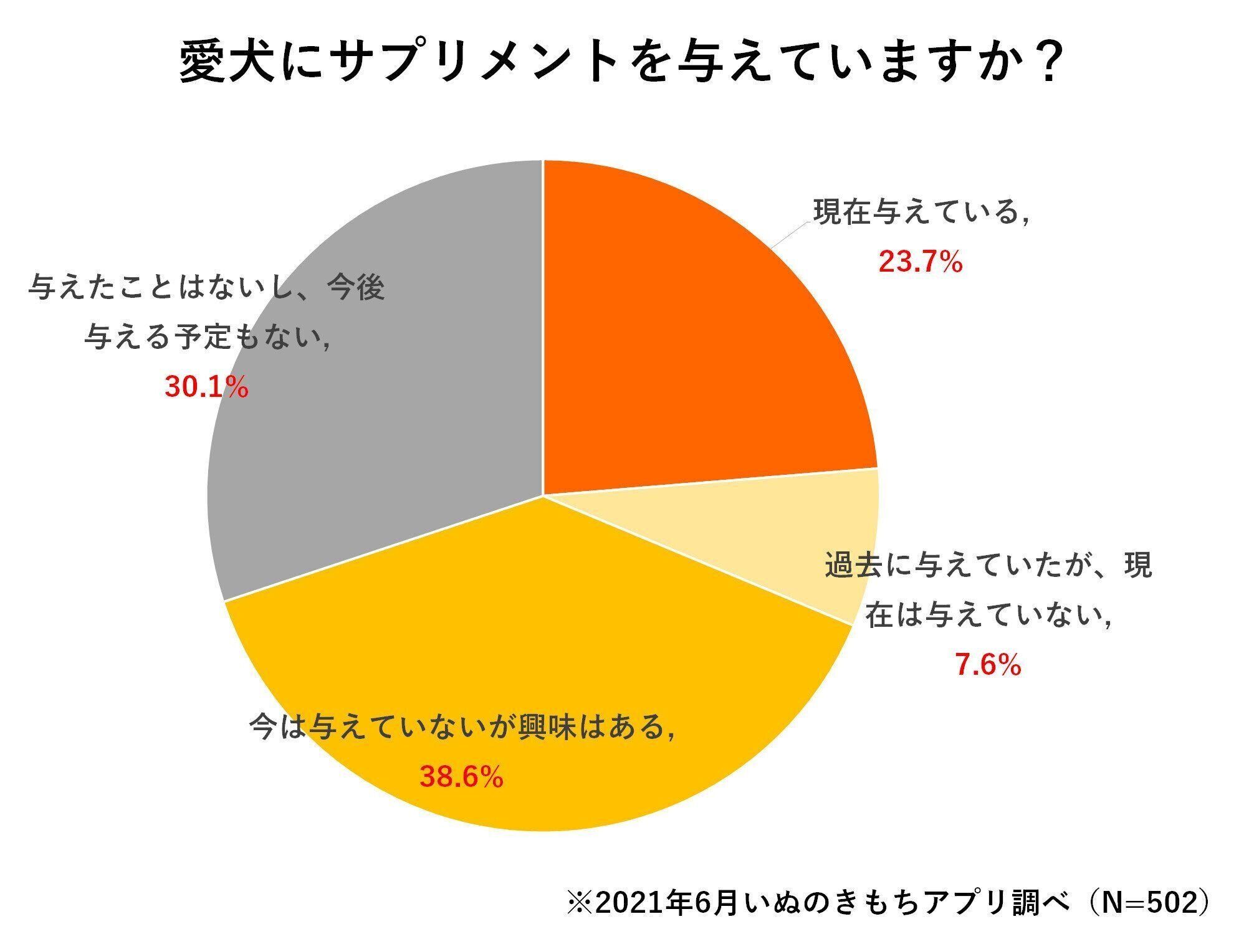 23.7%の飼い主さんが現在サプリメントを与えており、38.6%の飼い主さんが関心あり