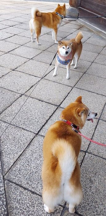 柴犬さんたちはこうしてお互いに大丈夫な距離を測っているのですね。